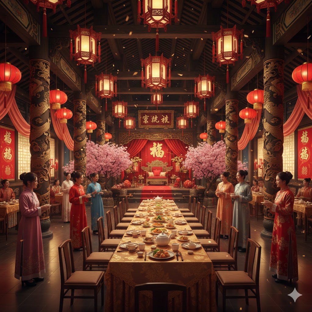 赤を基調とした華やかなデザイン。ゴールド調の装飾がアクセントになっていて写真映えも抜群です。